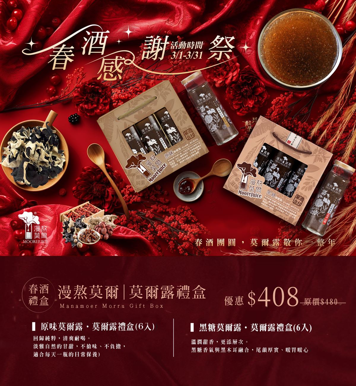 與紅棗、桂圓、枸杞、薑母等真實食材為基底,細火慢熬而成,無咖啡因、無防腐劑、無化學添加!